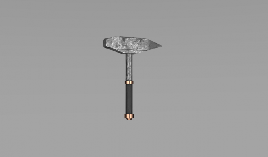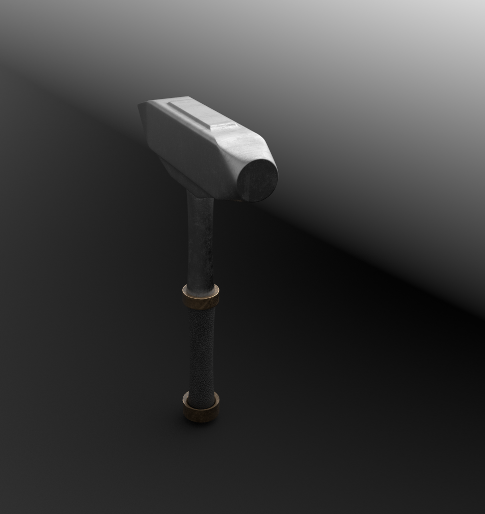 I wanted the piece to look as if the bulk of the hammer was used frequently and due to this it would be aged and worn on the head and the shaft but the handle grip and the copper bindings would have to be replaced frequently. After revising the piece, I created the first proper instance of the asset.