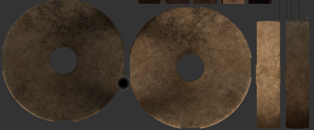 The texture used on the wheel itself was leather with some of the colour values shifted as it appeared to have a rough edge to it when darkened from its normal starting colours.