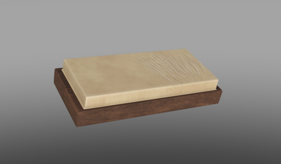 The whetstone is based on a block sharpener I have in my kitchen. From this image it is easy to understand how I created this asset. The rubber on the base of my block became wood to follow the design language of the other assets.