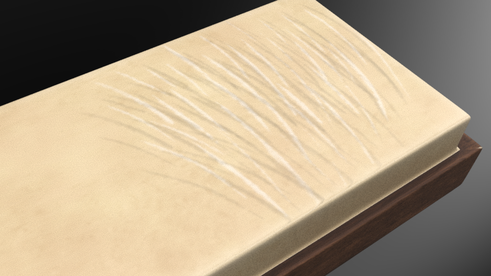 This asset is basic in its design; however I feel the addition of several scratches on the surface add to its character. Much like sharpeners I have owned they accumulate a number of marks if you don’t hit the correct angle.