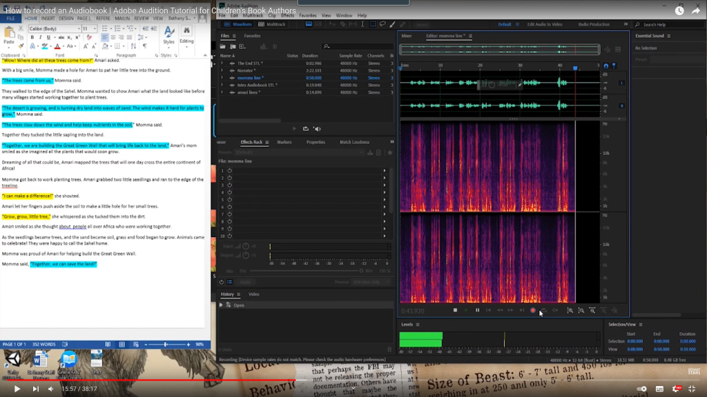 Stahl, B., (2020). How to record an Audiobook | Adobe Audition Tutorial for Children’s Book Authors. Available at: <https://www.youtube.com/watch?v=nikxh8eT-D0&t=1123s> [Accessed 31 October 2021].