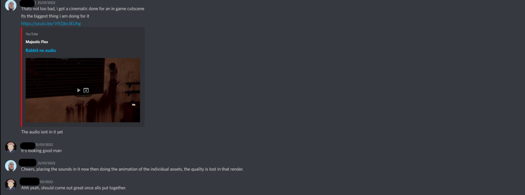 However, as my submission date was postponed, I have since asked Deacon through Discord to take a look at my work in progress and provide any input to try and make the most of the intended outcomes of this module. I feel that we have achieved something to be proud of considering the initial limitations posed by team size and then my unforeseen illness. I feel that we worked well together and were able to support one another with ideas and sought suggestions for inspiration from one another.