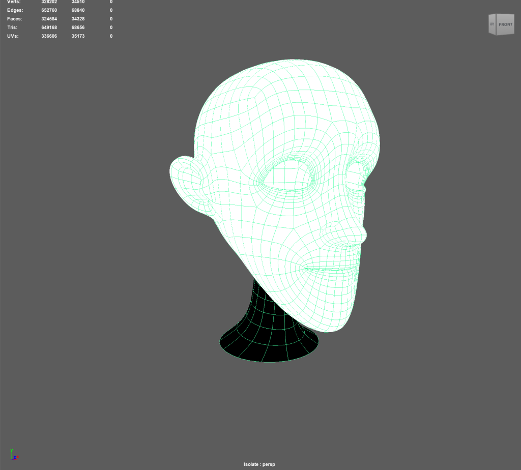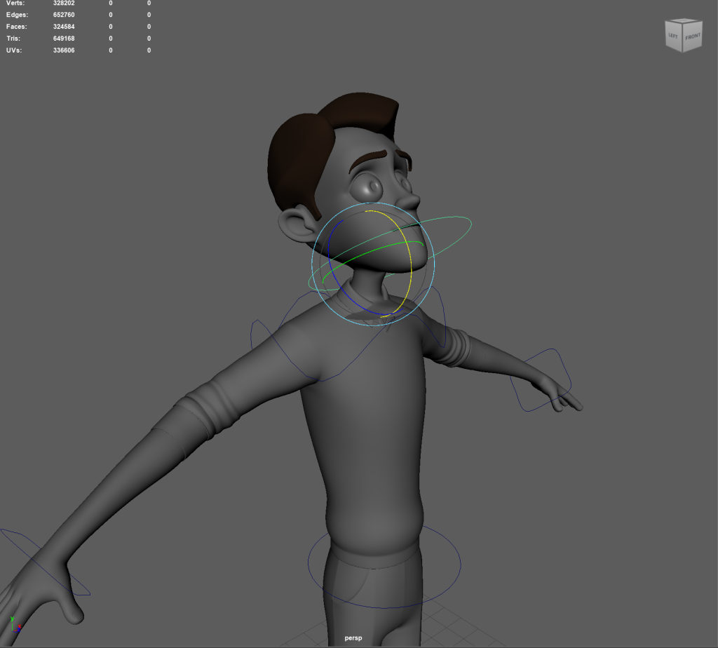 I attempted to use the blend shapes tool to create a wide variety of expressions based on Eckmans group of seven universal emotions for a wide gamut of expressions. However as my model became unccentred during the development of this piece the vertex manipulation wouldn’t mirror on the X axis correctly. By unbinding the head from the model, it allowed me to properly mirror but when rebound to the rest of the mesh the eyes and mouth components would behave erratically. This potentially was because any prior weight painting on the model was no longer valid and created a host of new complications to work through.