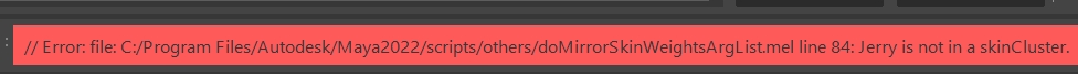 After I finished balancing out the left arm joints so they did not deform his back I attempted to replicate the results on the right hand side by duplicating the values. This initially resulted in this error code appearing at the bottom of my screen.