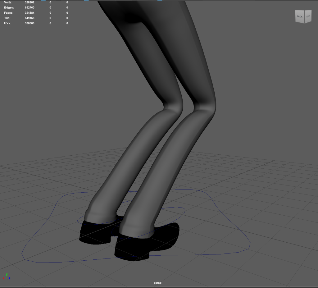 The next issue I ran into when pushing the model into more extreme poses was how the back of the shoe would deform. I fixed this by flooding the whole shoe with white to try and alleviate the deforming when moving the foot controlling around.