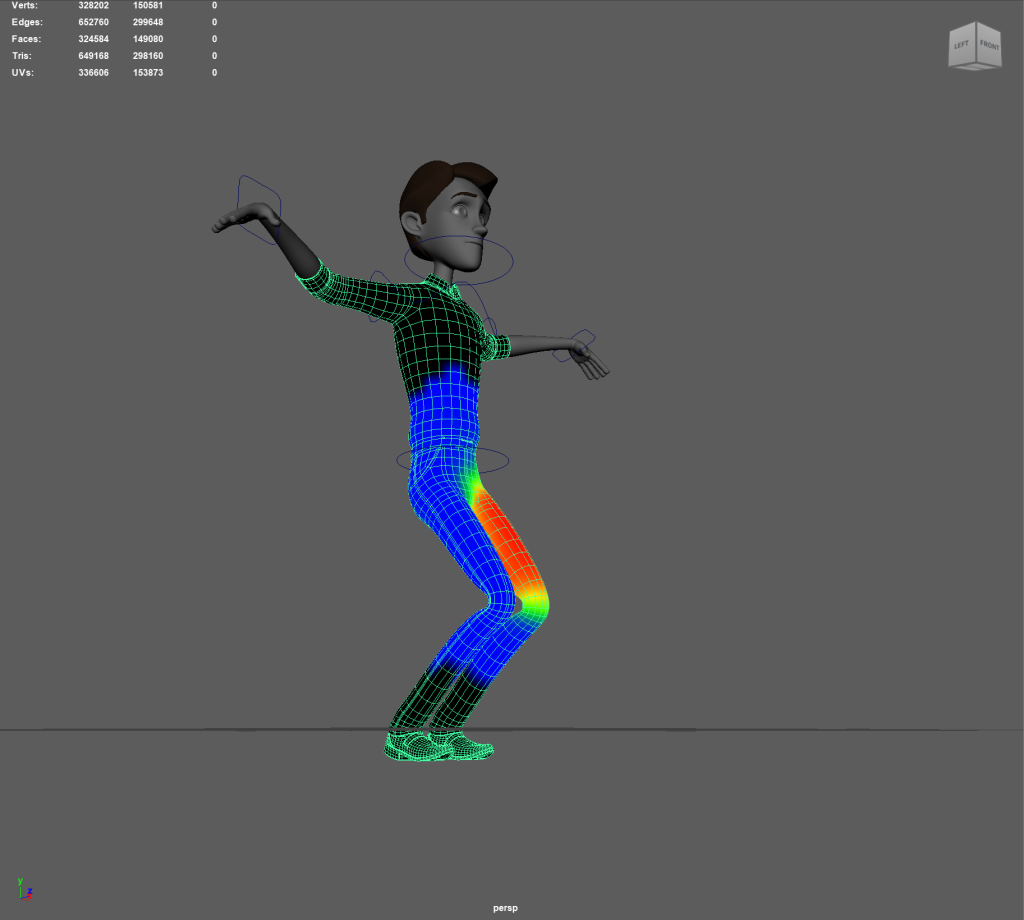 I tested multiple poses to try and eliminate the legs affecting one another, I eventually flooded the bottom of the left leg as the right moves as it caused a weird pulling on the model. I am not entirely sure why the two legs have such a strong influence on one another.