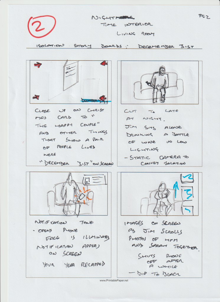 Jim’s phone pings with a “Your year recapped in photos message” as Jim scrolls through and sees various photos of him and Sarah punctuating his isolation. (Scroll images in time with finger swipe)