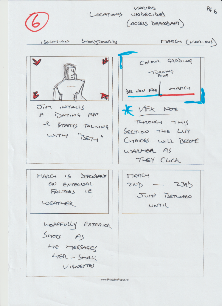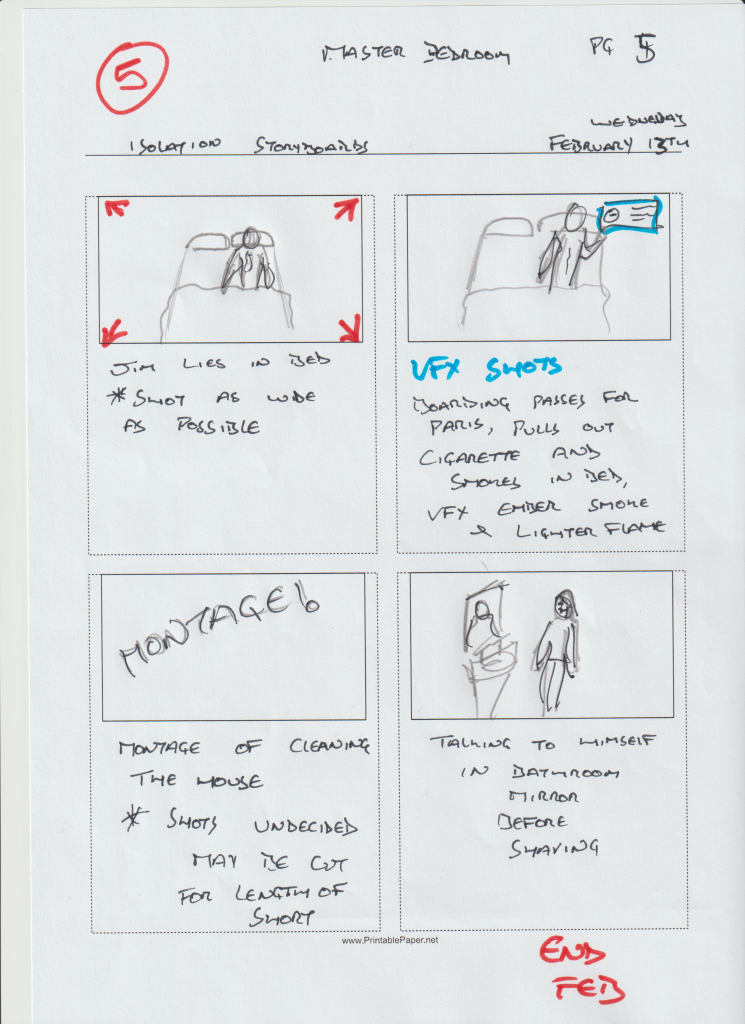 Reminder pops up on phone “Boarding Pass X2 – Paris, France are ready for download”, Jim lies defeated on the bed and pulls out a cigarette looking dishevelled. The place is a mess. “What the hell am I doing?”. Montage of cleaning the house and shaving to get his act together.